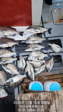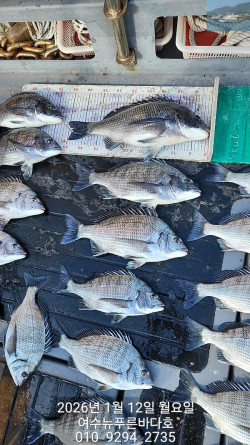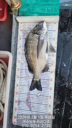 *안녕하세요..뉴푸른바다호 입니다*#감성돔 #감성돔출조 #감성돔선상 #점주조황 #선상찌흘림 #솔직한 조황2026년 1월1일 새해 첫감성돔 조황 입니다. 4짜외에 감시들 . . 터져 불고 빗기 불고 . . . ㅠ. ㅠ함께 해주신 조사님들 바람부는데도낚시 하시니라 고생 많으셨습니다.*구멍찌는 사용하지 마세요일요일 감성돔 출조 합니다.맛있는 감생이 잡으러 같이 가보시게요.*선비:12만원(밑밥.미끼.식사 포함)*선사제공(생수.음료수.컵라면.커피.스낵류)쿡 쿡 쳐박는 짜릿한 손맛 보러 오세요.감성돔은 쭈~~~욱 출조 합니다.*출조시간은 전날 오후에 문자 드립니다(문자 확인 꼭 꼭 부탁드립니다)함께 하실 조사님들 문자또는 전화 주세요.010. 9294. 2735로 콜~~☆선상 24로 예약 하러가기https://blueocean.sunsang24.com/*** 여수 뉴푸른바다호 예약 안내 ***예약문의 : 010-9294-2735오시는길 : 전남 여수시 어항단지로 18 (소경도대합실 앞 방파제 끝쪽 좌측)홈페이지 : https://blueocean.sunsang24.com/
